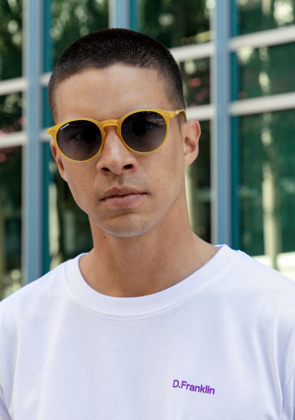 The blue gradient polarized lenses and yellow frame create a flawless finish. This design features a metallic D.Franklin logo on both acetate temples and our emblem on the right lens. With a 137mm front frame and 50mm lens width, these glasses will flatter most faces. The side temples are 145mm long.