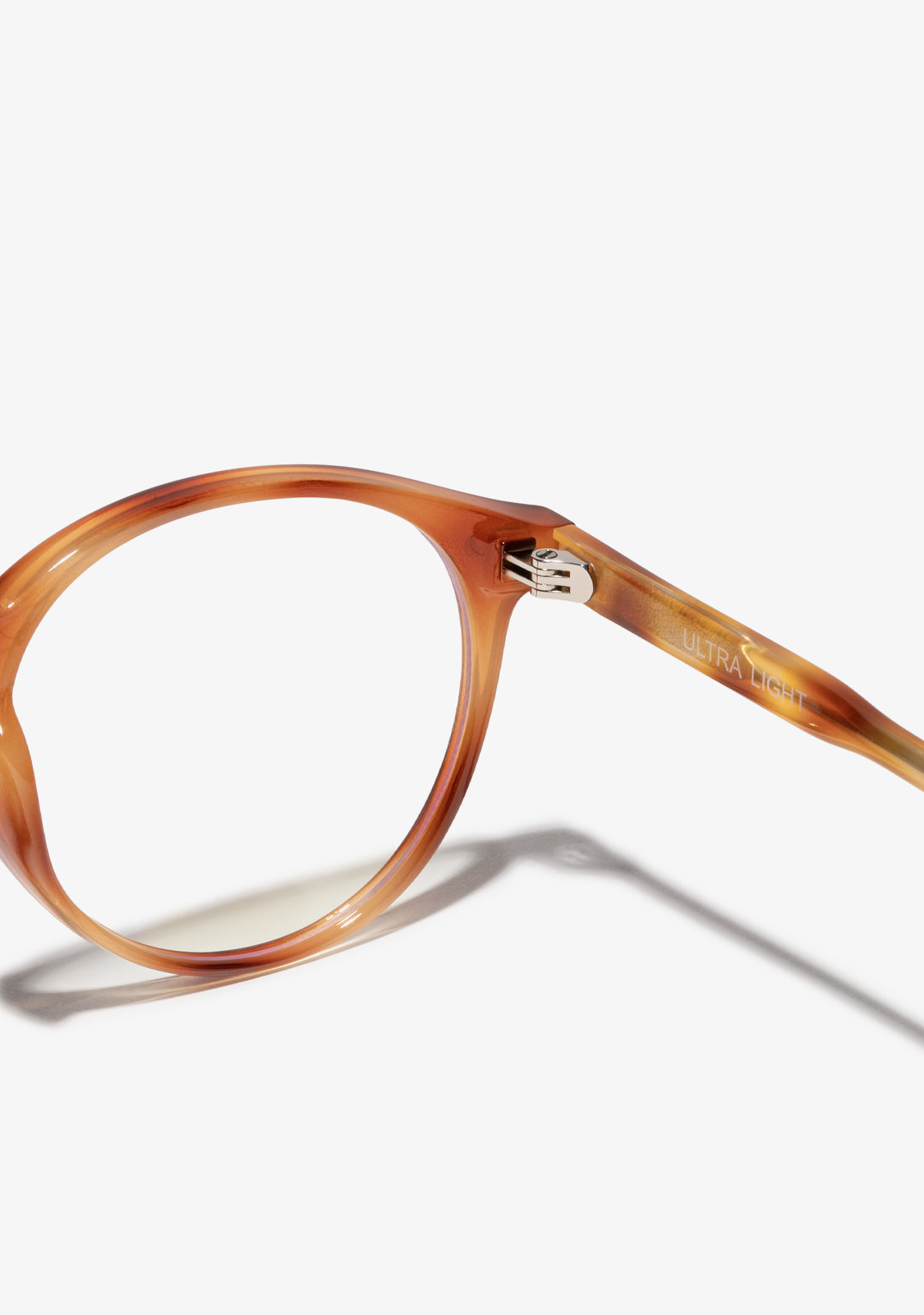 The Ultra Light Max Limited Edition renews one of the most iconic D.Franklin® collections by increasing the size of its frame and improving comfort to turn round glasses into a must have. The Ultra Light Max Tort / Blue Block stand out through the elegant light carey finish.