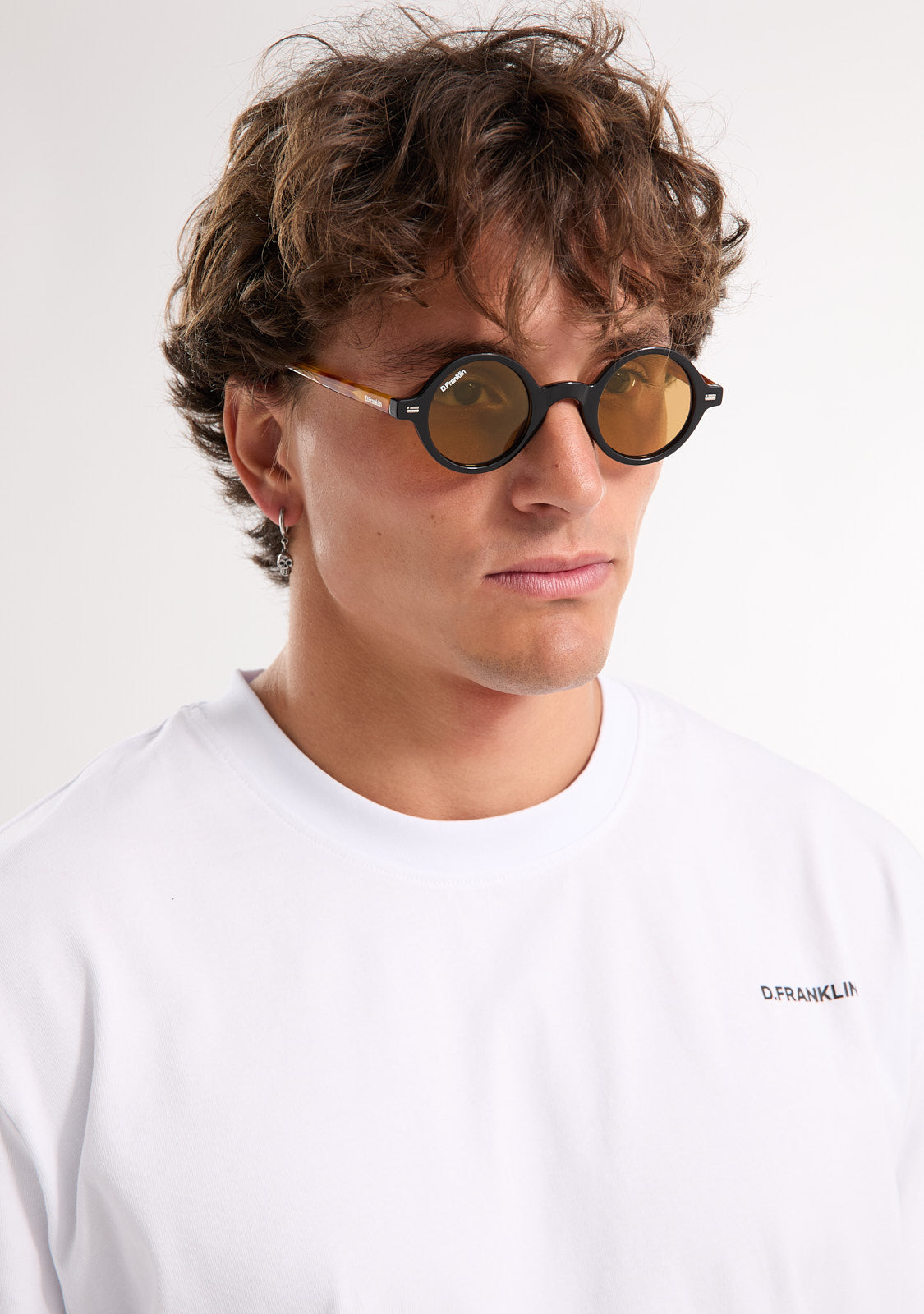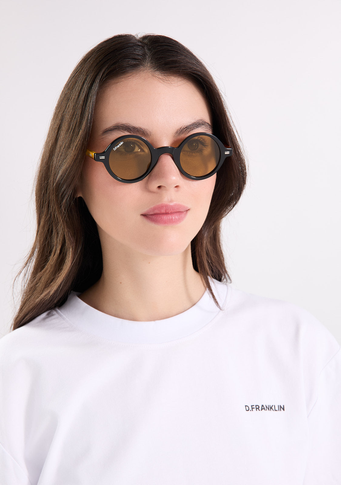 The Ultra Light Round Black / Amber sunglasses by D.Franklin stand out for their minimalist design and superior functionality. With a TR90 front frame, these sunglasses combine lightweight construction and durability, making them ideal for extended wear. The acetate temples ensure a comfortable fit and an elegant finish.