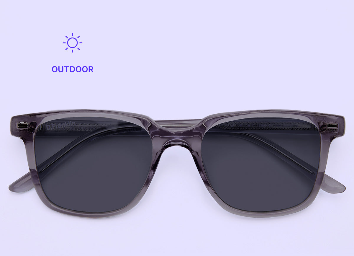 | Frame | Photochromic (clear → grey) · Injection acetate |