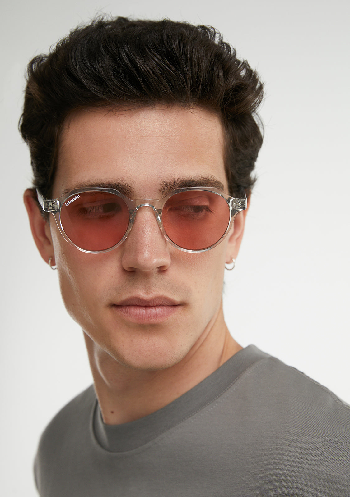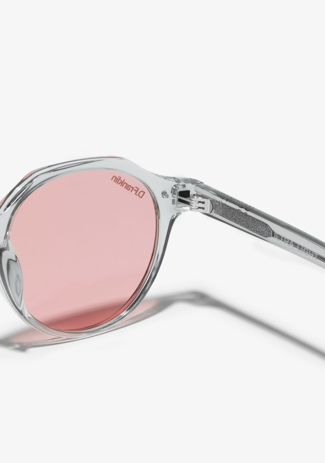 Its round lenses smoked in red and transparent TR90 frame highlight the timelessness of this model, with a different touch. It features our distinctive D.Franklin details: the logo engraved on both metal temples and our emblem on the right lens. With a lens width of 47 mm and a front frame of 138 mm, these glasses flatter most faces. The side temples have a length of 145 mm.