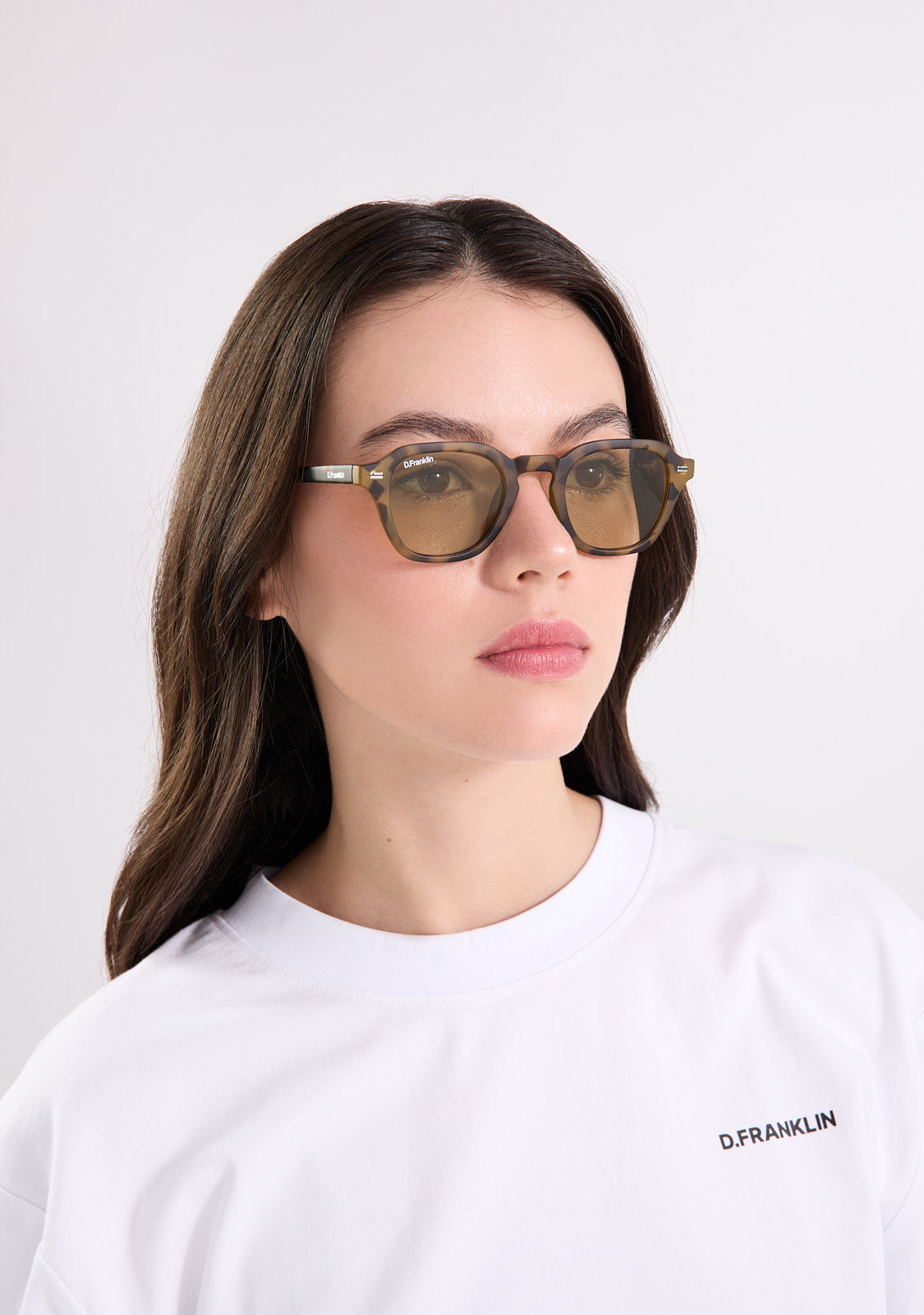 The Ultra Light S Square Matte Tort / Photochromic Brown sunglasses by D.Franklin combine contemporary design with advanced functionality. Crafted with a TR90 front and bridge, these sunglasses are lightweight yet durable, while the acetate temples provide a comfortable fit and a sophisticated touch.