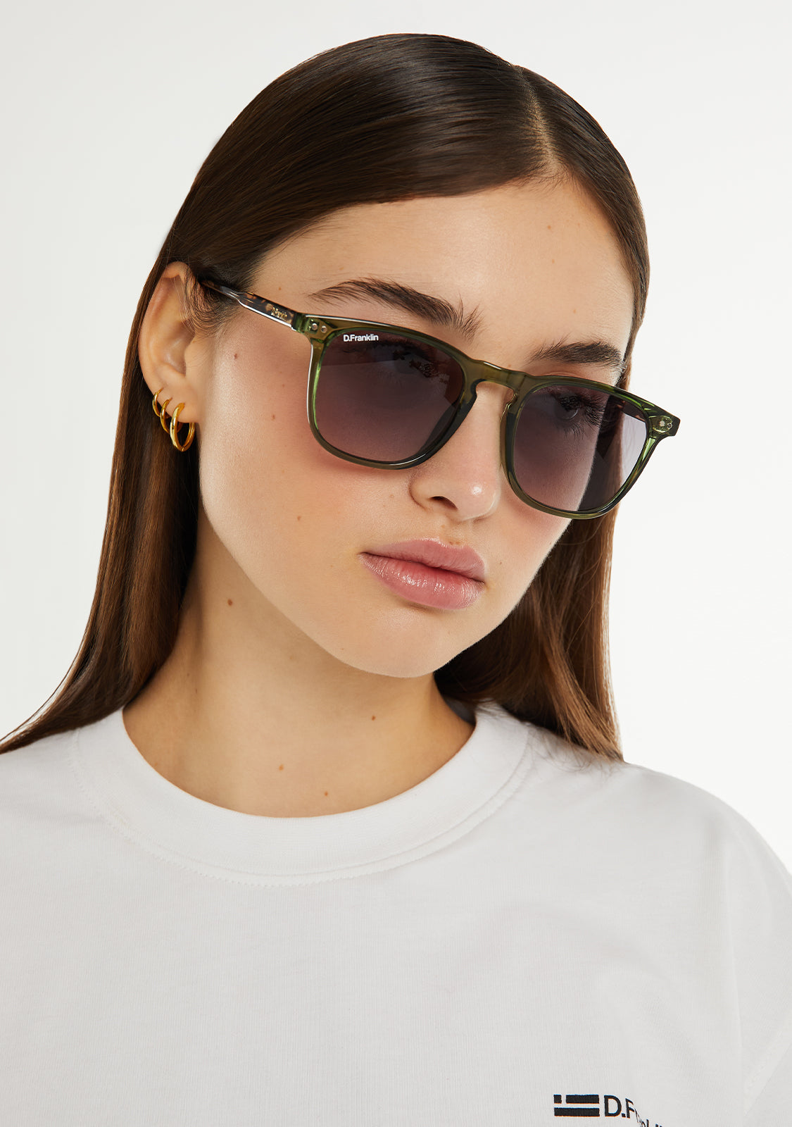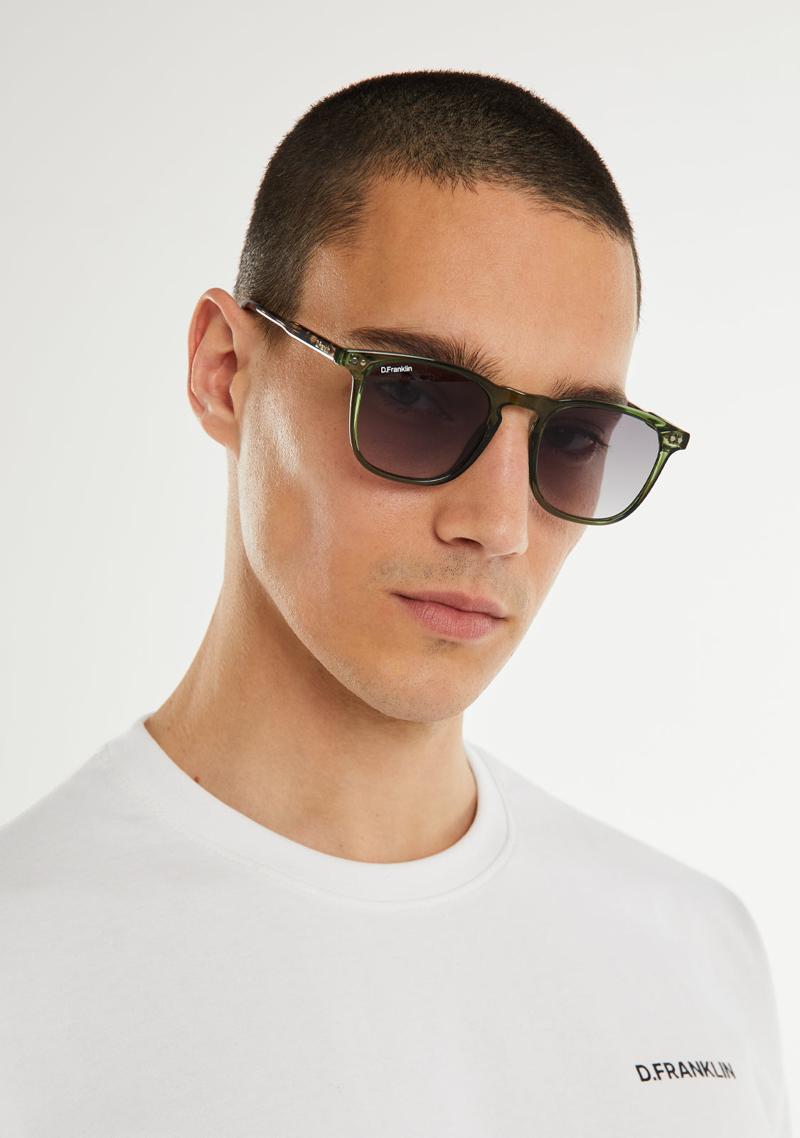 Sunglasses with rounded frames in green tones. A classic piece for the most Uncommon of looks.
