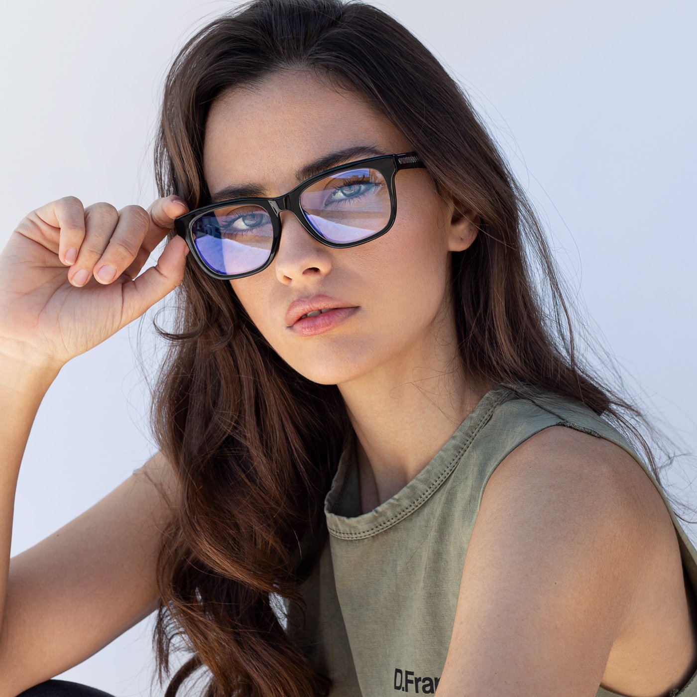 This model includes Blue Block technology. These lenses protect against eye fatigue caused by continued use of digital displays.