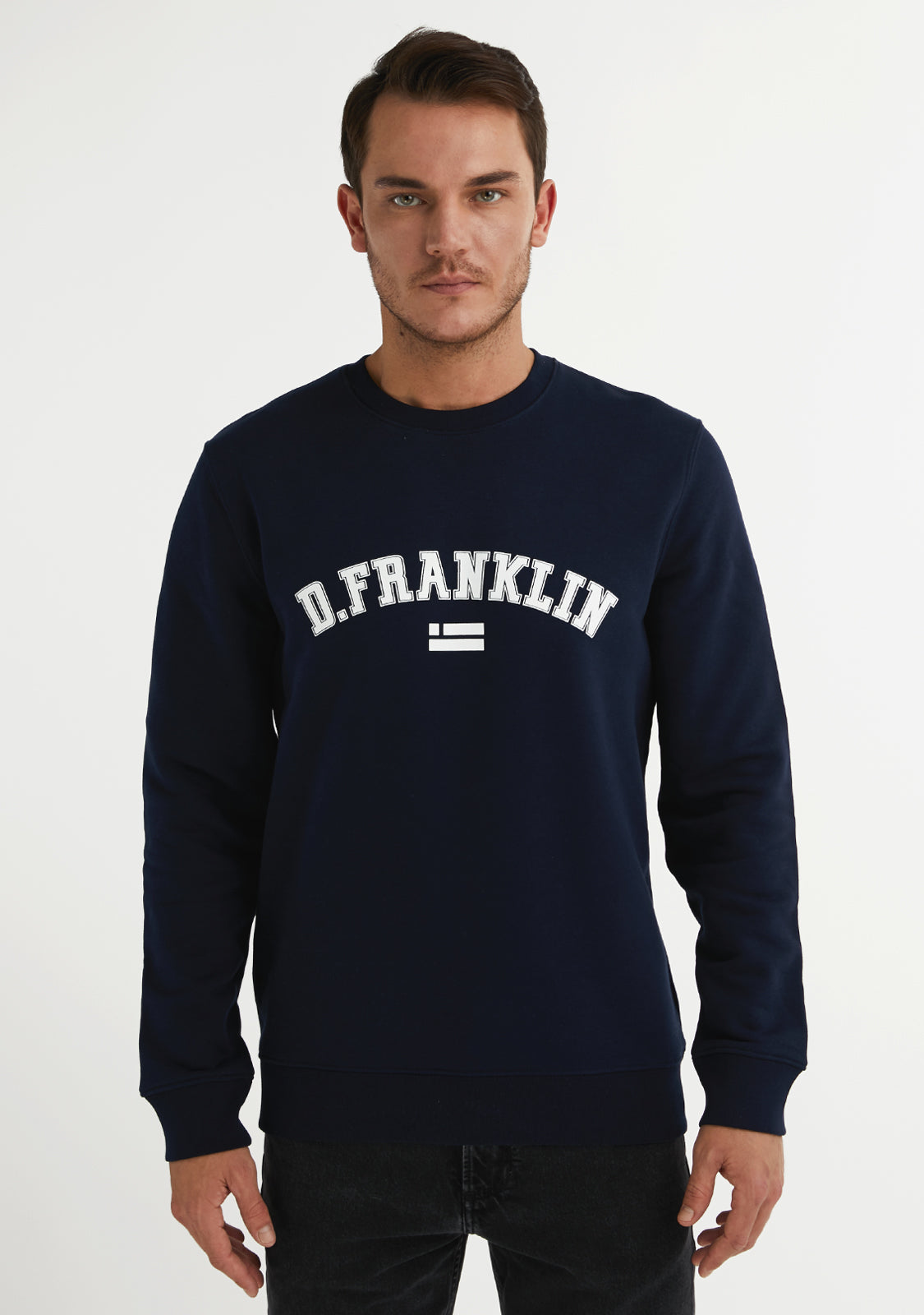 Don't miss our new Varsity Sweatshirt Navy / White. Inspired by the purest D.Franklin style. Simple, comfortable and fashionable. Made with the most combinable basic colours and a central logo screen-printed in contrast. Its materials are top quality and make its fabric breathable, elastic and comfortable.- Round neck