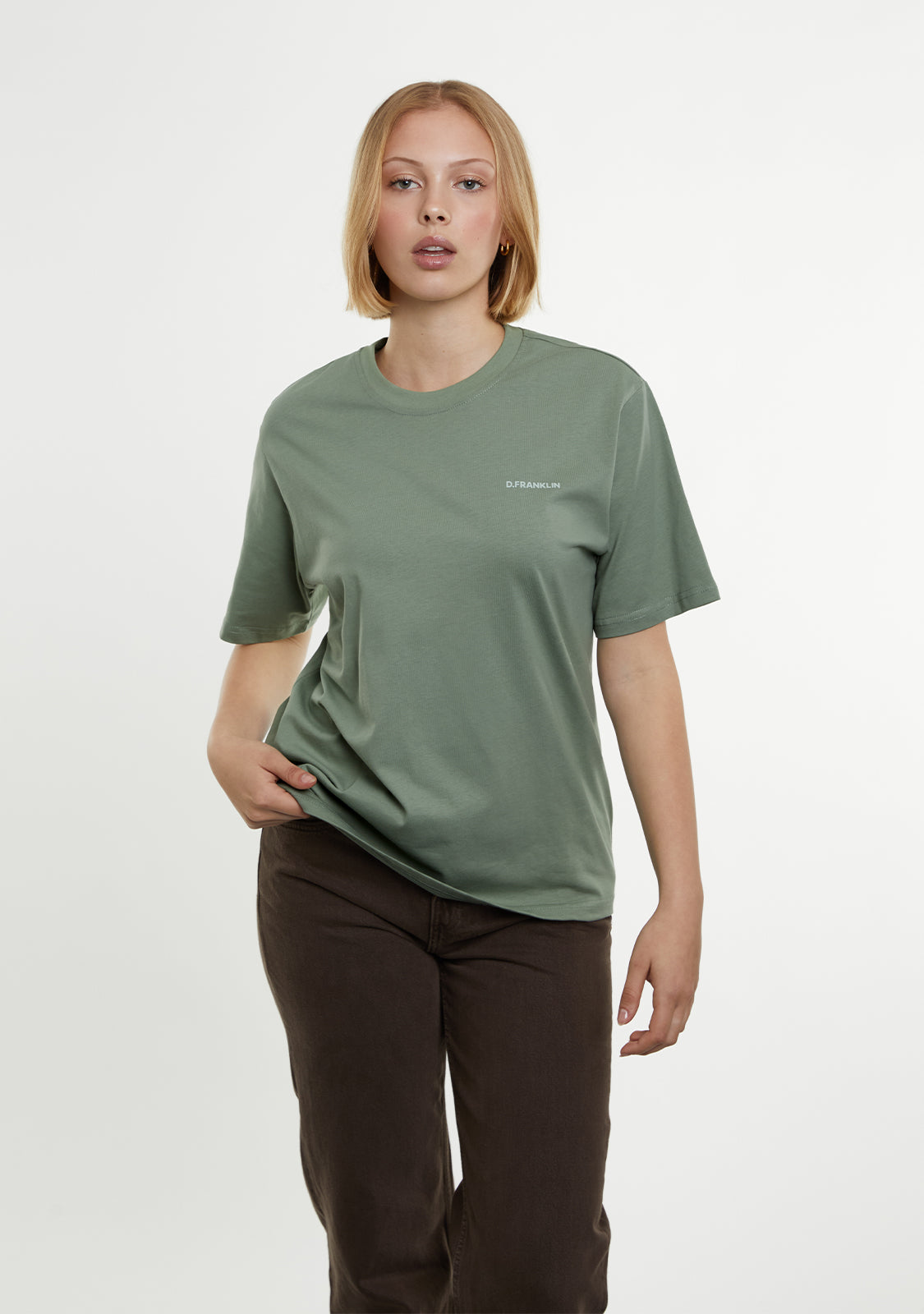 This short-sleeved green t-shirt with a round neckline features the D.Franklin logo on the upper left side in white contrast. Additionally, the back has an exclusive design in the same colour.